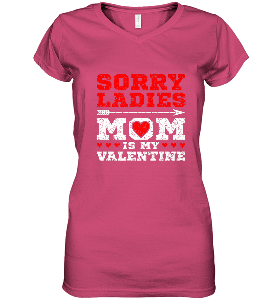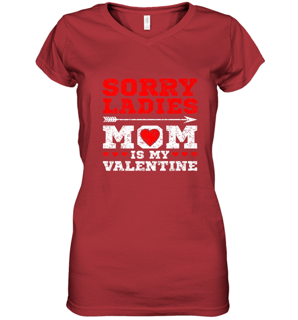 Sorry Ladies Mom Is My Valentine's Day Art Graphics Heart Women's V-Neck T-Shirt